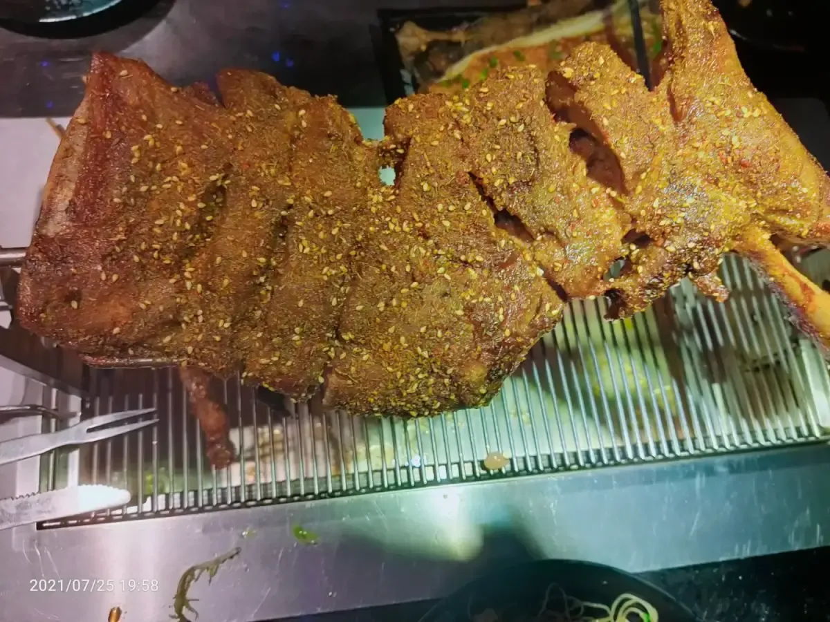 晚上六点多去坪洲吃烤羊腿, 等了好久吃了好久
