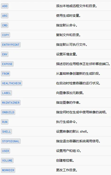 CMD 和 ENTRYPOINT 区别:这两个指令都可以被用来在Docker容器启动时运行指定的命令,但它们的目标有所不同。“CMD”用于提供用于默认应用的默认值,这些默认值可以很容易地在运行时覆盖。而”ENTRYPOINT” 提供一个始终将在容器中执行的命令,这个命令的参数只能够被append进去,无法被覆盖, 也可以用来做准备工作,比如初始化数据库,生成文件等。